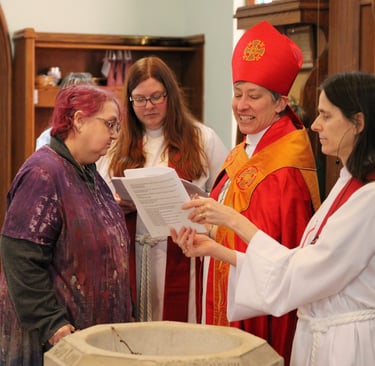 The bishop of the Diocese of Rochester, the Rt. Rev. Kara Wagner Sherer, visits annually. During the bishop's visit, there can be baptisms, confirmations, and receptions of new members. The bishop joins the congregation for coffee hour and meets with the vestry, the congregation's governing body.