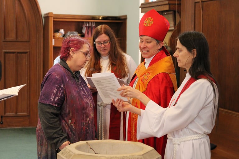 We celebrate baptisms with our priest or our Bishop, and our Bishop's visits may also include confirmations, or receptions.
